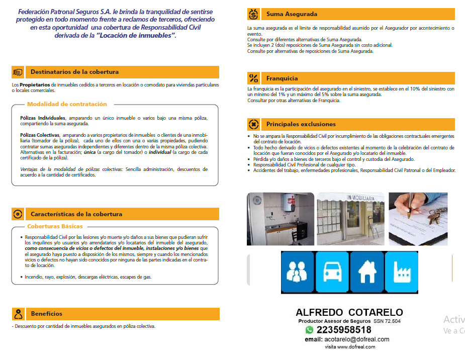 Cuando decidis alquilar tu propiedad tenes que tener en cuenta que la sometes a los siguientes riesgos: incendios, voladura de techos, derrumbes, daños a terceros, daños a los inquilinos, y a la falta de pago del canon locativo.